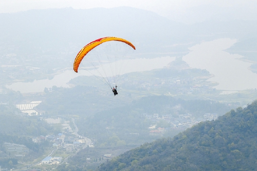 早晨的早晨灯光穿透了Sifeng Mountain毛毛雨,并在Tingzu镇华乌瓦村铺开了新建造的Lufengzhai观察甲板。 “返回者”西哈瓦(jiahua...